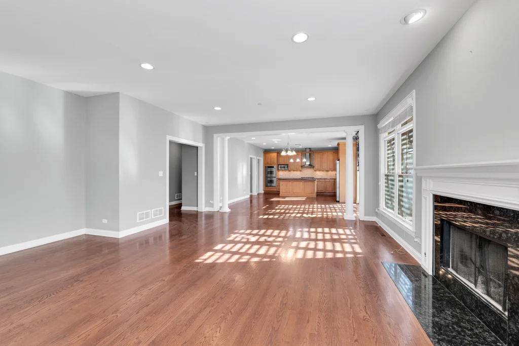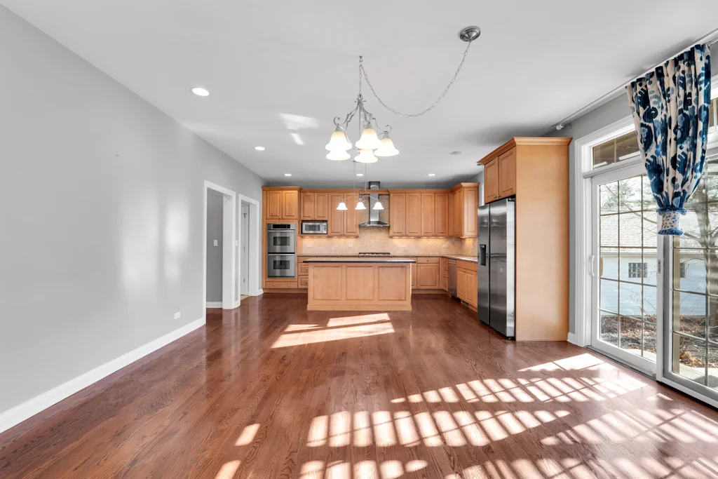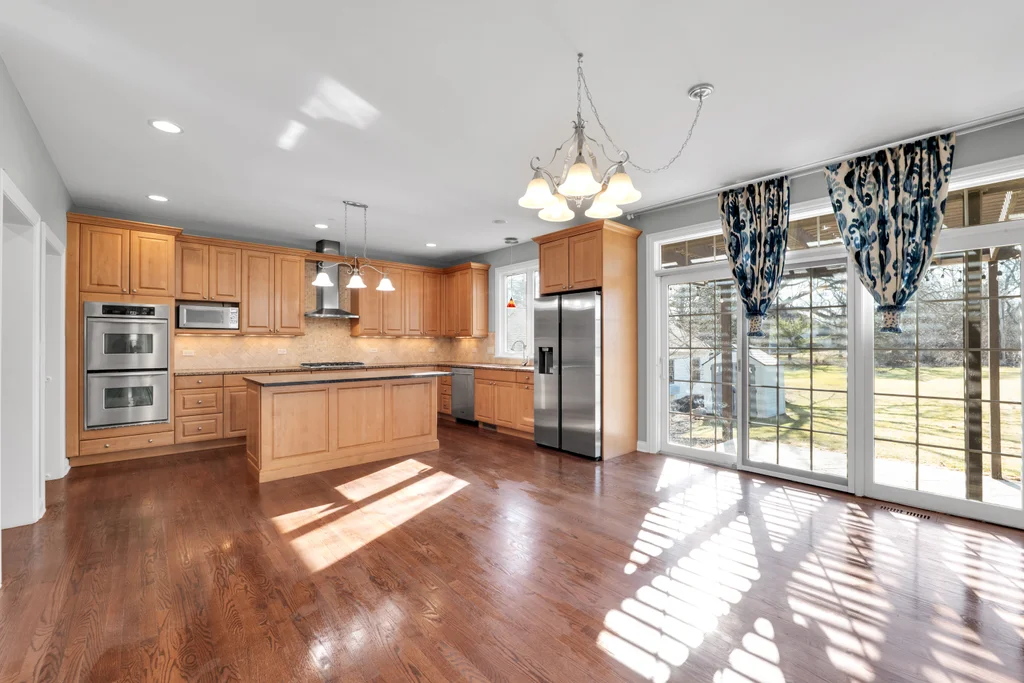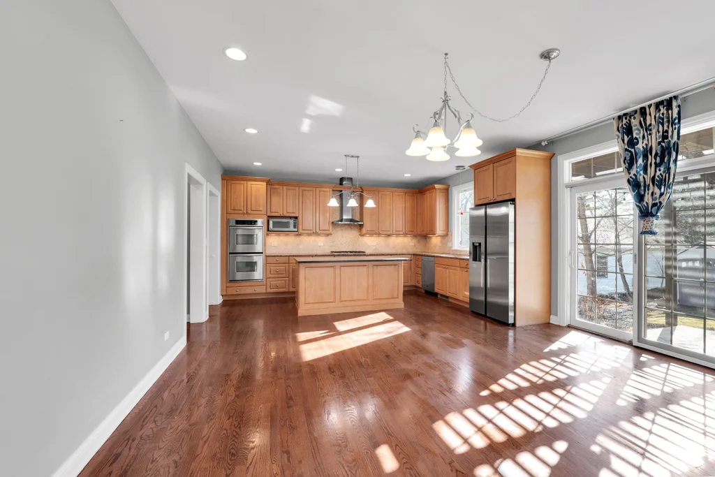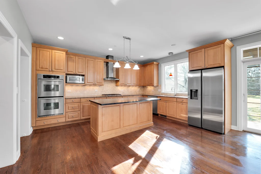 A rare opportunity just steps from the heart of downtown Libertyville-this spectacular custom-built two-story home offers the space, yard, privacy, and convenience that are nearly impossible to find so close to it all. Walk to dining, shopping, entertainment, and the Metra, with I-94 just minutes away for effortless commuting. Set on an expansive over half-acre wooded lot, this 4-bedroom, 3.5-bath home with a 3-car garage delivers refined living both inside and out. The main level features beautiful hardwood floors throughout, an open-concept family room and spacious eat-in kitchen designed for everyday living and entertaining alike. The gourmet kitchen is equipped with granite countertops, travertine backsplash, double ovens, high-end stainless steel appliances, and 42" custom maple cabinetry. The formal dining room with butler's pantry sits just off the kitchen, while the front-facing study-highlighted by a striking coffered ceiling-offers an ideal work-from-home option. Upstairs, all four bedrooms are thoughtfully placed, including two connected by a Jack-and-Jill bath. The expansive primary suite impresses with a tray ceiling, spa-like bath featuring double sinks, jetted tub, oversized shower, and a massive walk-in closet with custom cabinetry. The bonus room is approximately 500 sf of extra space that makes for a great playroom, workout room, or guest room that feels more like their own apartment. Additional highlights include second-floor laundry, a custom wood pergola on the patio, outdoor shed, durable Hardie Board exterior siding, nearly 2,000sf of open, unfinished basement space with bathroom plumbing rough-in, and access to highly sought after Libertyville schools. Opportunities like this-walkable to downtown with this much land and space-are incredibly rare. Don't miss your chance to own one of Libertyville's most desirable locations.